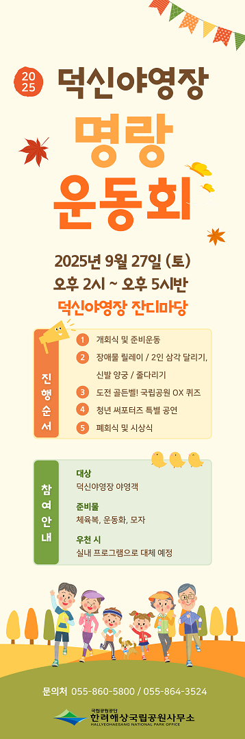 ★ 명랑운동회 우승팀에게는 소정의 상품도 지급되오니 야영객분들의 많은 관심과 참여 부탁드립니다!